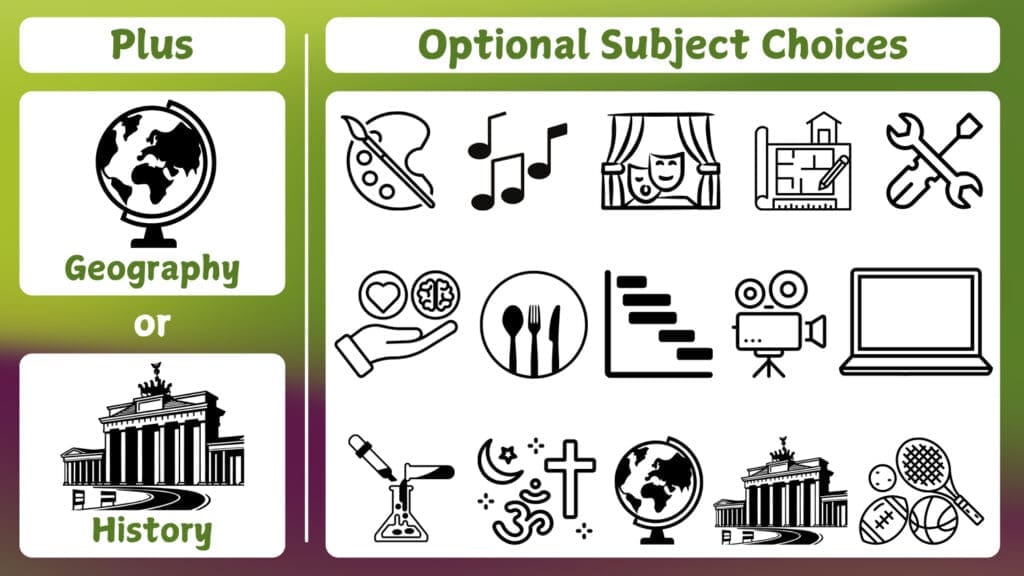 All students study either Geography or History (or both if they choose Geography or History as an “option” subject).